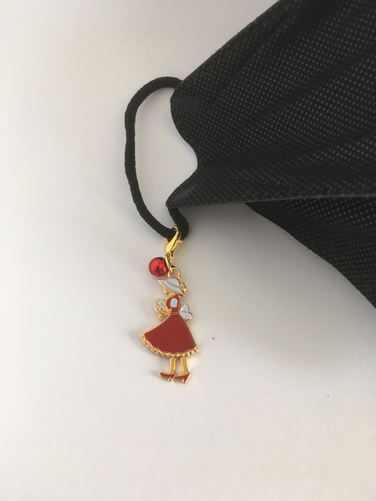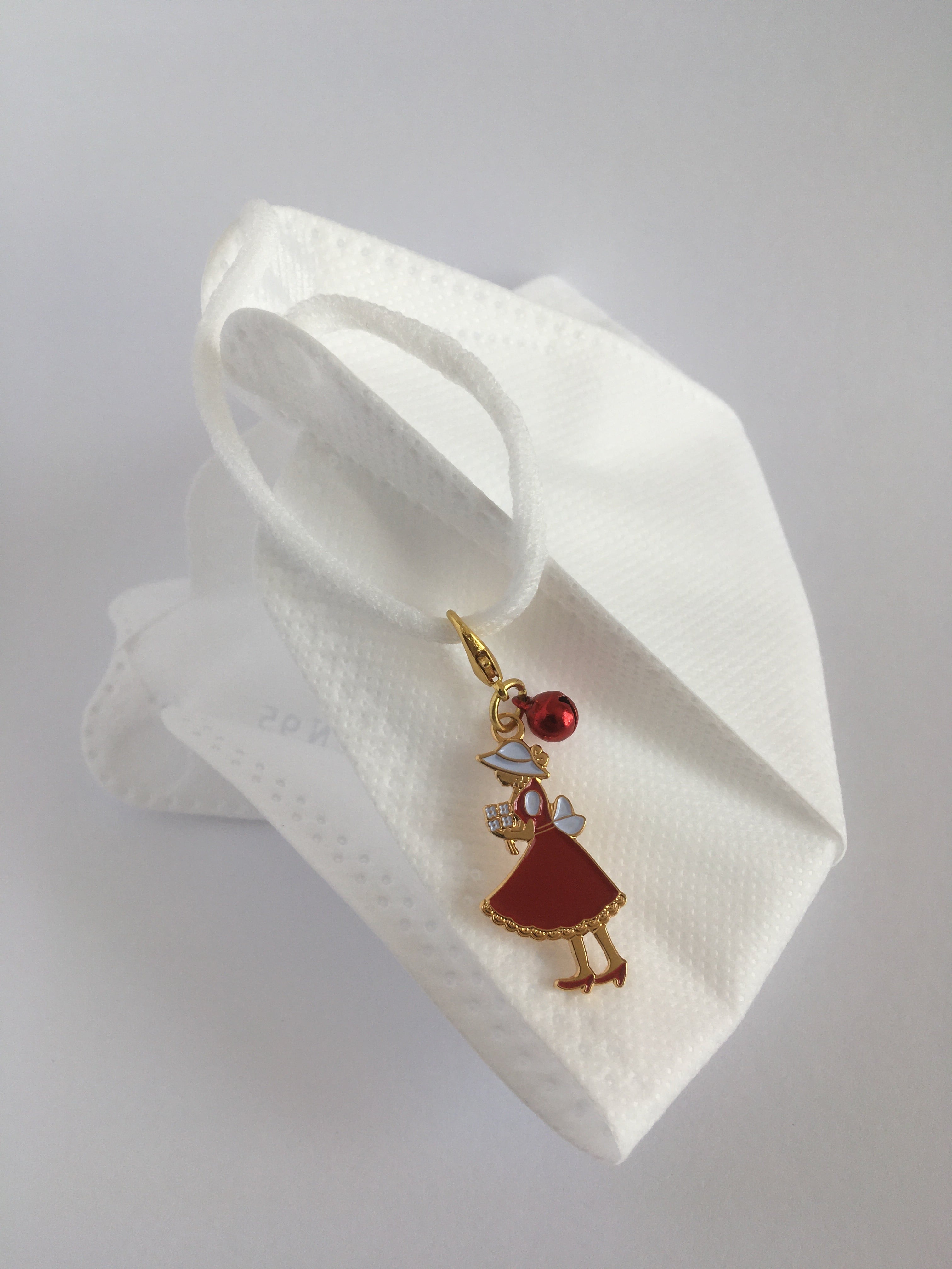 横浜山下公園にある「赤いくつの女の子」をイメージしたチャームです。マスクチャームにも手頃な大きさ,ファッションのアクセントに色々と工夫して使えます。