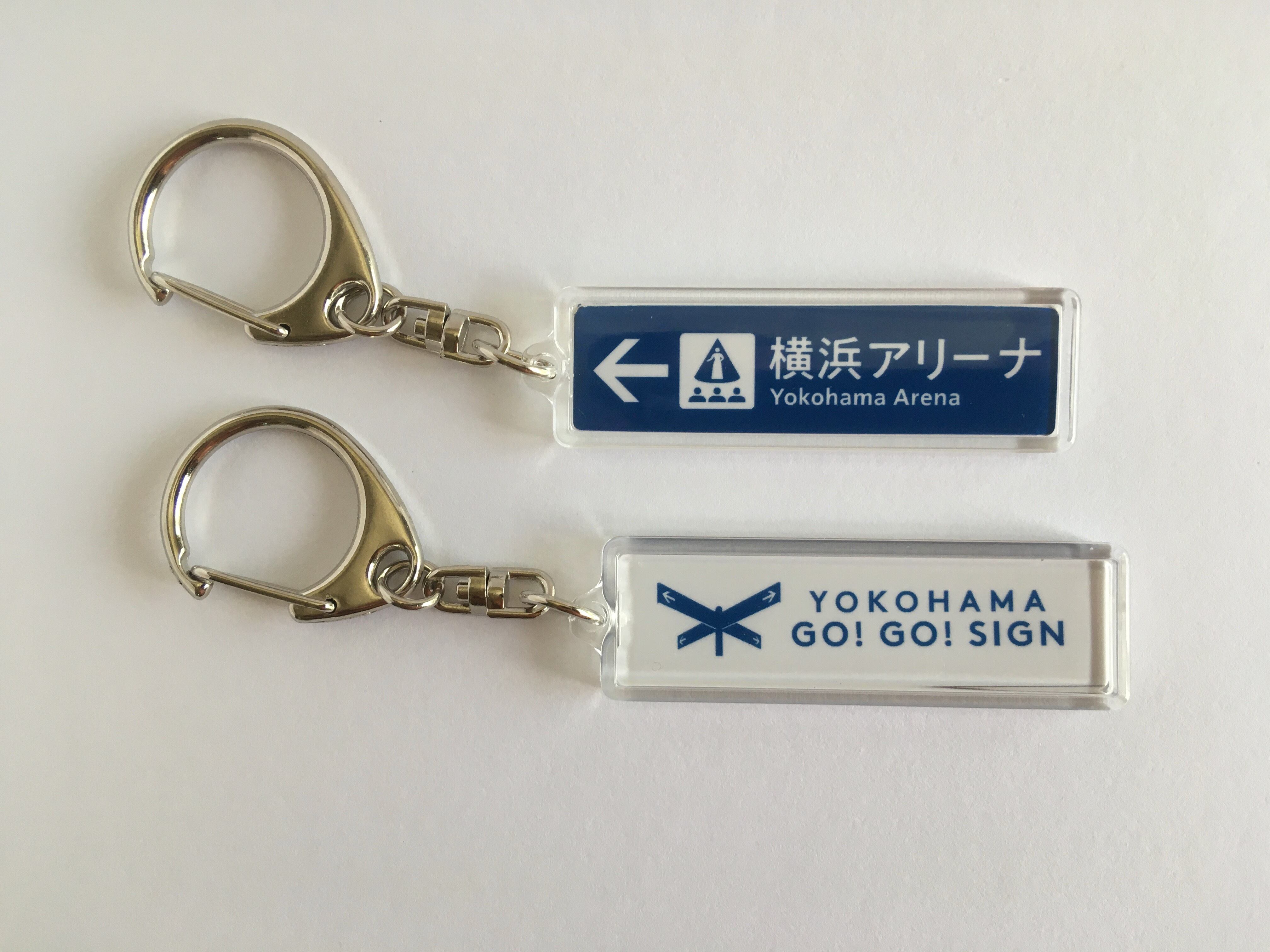 はじめての街を訪れたとき、街角の地図や表示板を目印に歩くことも多いですね。横浜には「矢羽根型サイン」と言われる、ポールに行先と方向が示された道標が立っています。散策する人が、気持ちよくスムーズに目的地に行けるように「GO!GO!」と後押ししてくれるこころ強い味方です。この「矢羽根型サイン」をキーホルダーにしました。